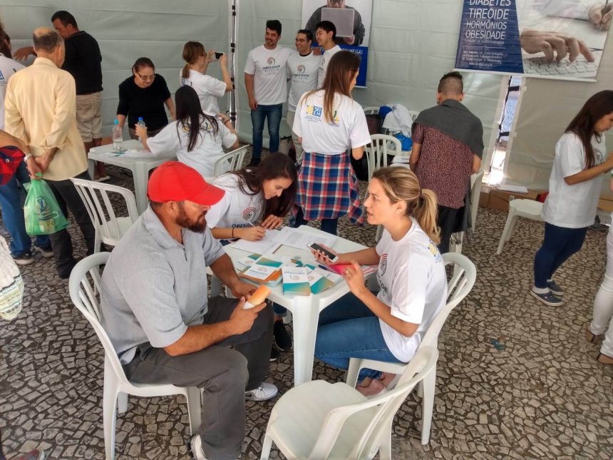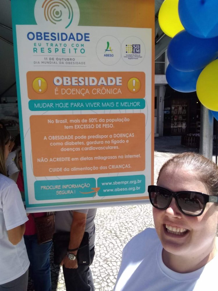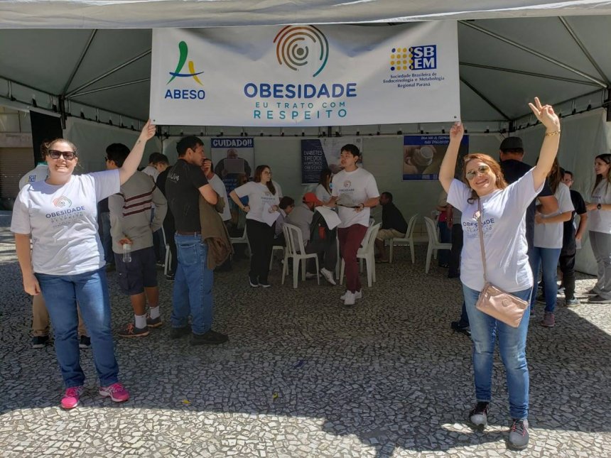 Nesta quinta (10) foi realizada uma ação de conscientização na Boca Maldita, no centro de Curitiba, para lembrar o Dia Mundial da Obesidade, que é comemorado nesta sexta (11/10). Quem passou pela tenda aprendeu a calcular o IMC e recebeu orientações médicas sobre as consequências da obesidade para a saúde.