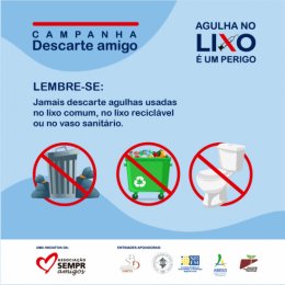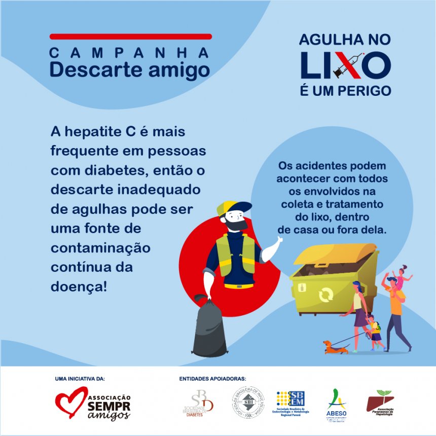 Para alertar a população sobre os cuidados necessários, a Associação SEMPR Amigos, com o apoio da Sociedade Brasileira de Infectologia (SBI), Sociedade Brasileira de Diabetes (SBD), Sociedade Brasileira de Endocrinologia Regional Paraná (SBEM-PR), Associação Paranaense de Hepatologia (APH) e Associação Brasileira para o Estudo da Obesidade e da Síndrome Metabólica (ABESO), criou a campanha pública “Agulha no lixo é um perigo”.