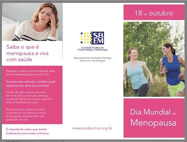 Em mais uma campanha para o público, a Sociedade Brasileira de Endocrinologia e Metabologia, chama a atenção para o Dia Mundial da Menopausa - 18 de outubro.