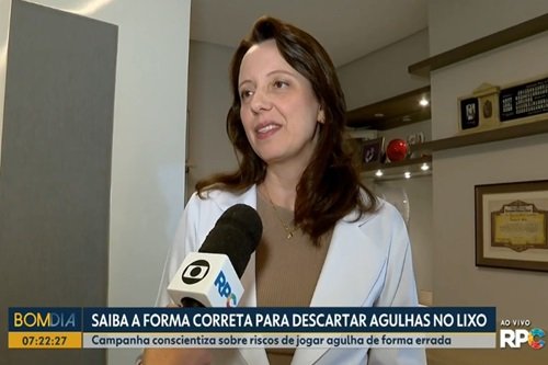 Em entrevista à RPC na última sexta (07/03), a Dra. Daniele Zaninelli, endocrinologista membro da SBEM e coordenada da campanha “Descarte Amigo – Agulha no Lixo é um Perigo”, deu orientações sobre como fazer o descarte correto de agulhas e seringas.