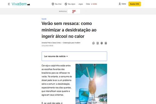 Em entrevista ao UOL, a Dra. Daniele Zaninelli, membro da SBEM, deu orientações sobre como minimizar a desidratação ao ingerir álcool no calor.