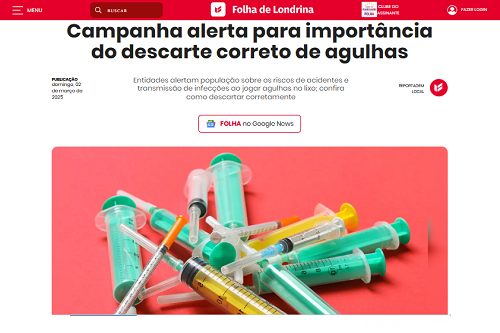 A Folha de Londrina deu espaço para a divulgação da campanha Descarte Amigo - Agulha no Lixo é um Perigo. A campanha tem o objetivo de alertar a população quanto aos riscos associados ao descarte incorreto de agulhas e seringas usadas em domicílio, assim como orientar a forma correta de fazê-lo.