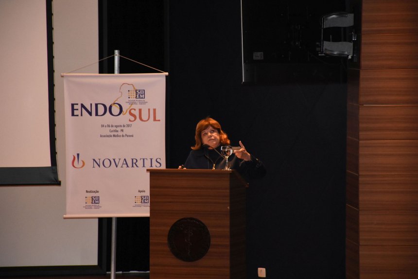 A programação do Endosul 2017 na manhã de sábado teve início com a conferência “Prevenção, diagnóstico e conduta terapêutica na doença renal no diabetes”, com Maria Tereza Zanella. A nefropatia diabética atinge cerca de 40% da população diabética e é hoje a principal causa da doença renal entre pacientes que passam por diálise, aumentando o risco de alterações cardiovasculares.