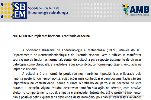 Notícias - Nota oficial SBEM: implantes hormonais contendo ocitocina