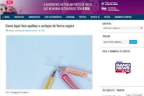 Entrevista Rádio BandNews Curitiba: como jogar fora agulhas e seringas de forma segura