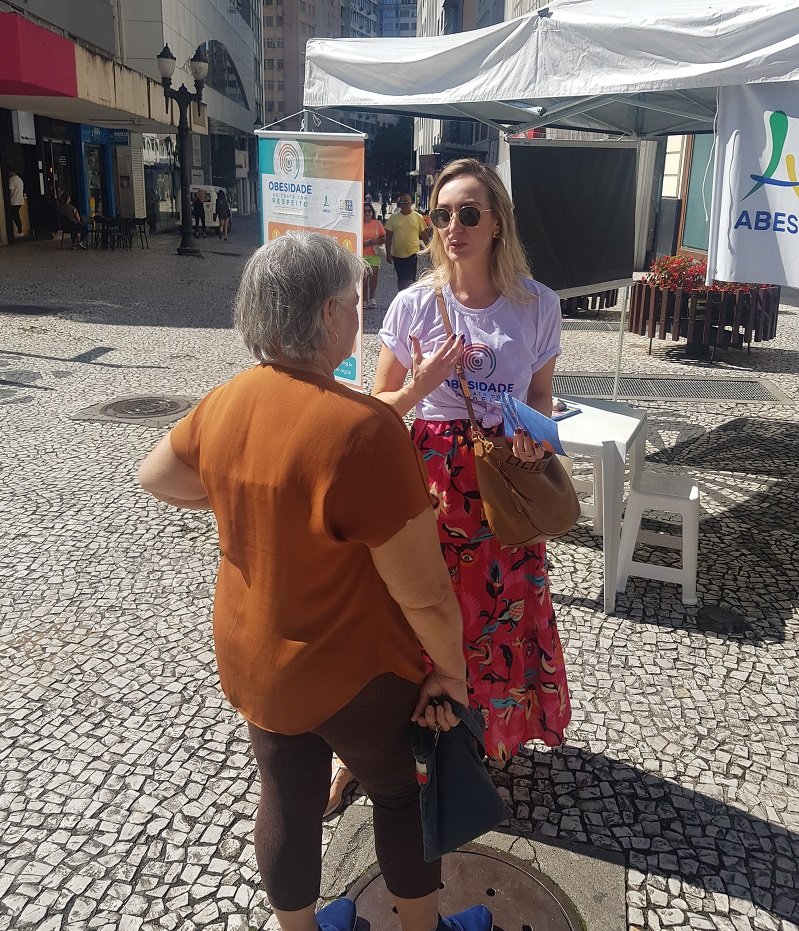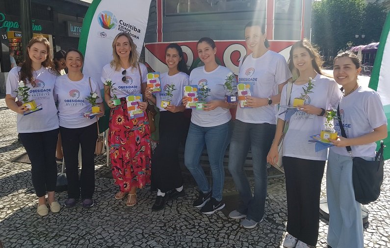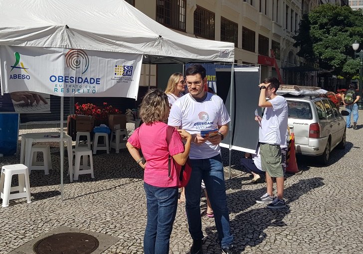 Foi realizada no último sábado (04/03), na Rua XV de Novembro, em Curitiba, uma ação educativa da SBEM-PR, em parceria com a Prefeitura de Curitiba, sobre o Dia Mundial da Obesidade. Alunos das ligas de endocrinologia das faculdades Evangélica Mackienze e Universidade Federal do Paraná também participaram da ação.