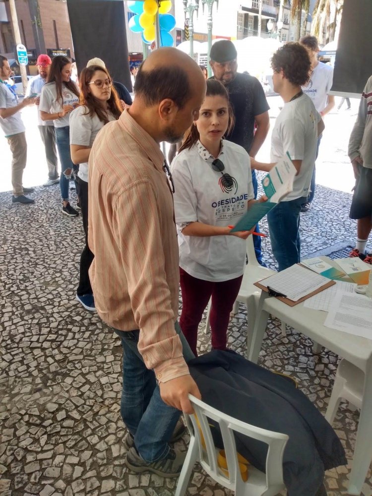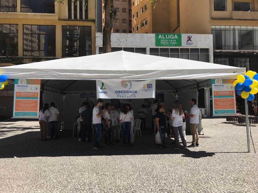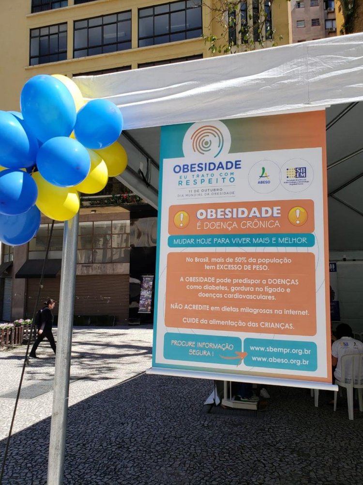 Nesta quinta (10) foi realizada uma ação de conscientização na Boca Maldita, no centro de Curitiba, para lembrar o Dia Mundial da Obesidade, que é comemorado nesta sexta (11/10). Quem passou pela tenda aprendeu a calcular o IMC e recebeu orientações médicas sobre as consequências da obesidade para a saúde.