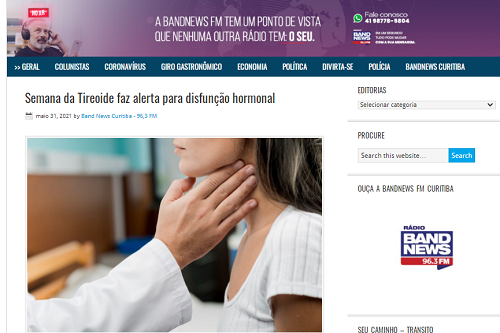 Notícias - Entrevista Rádio BandNews FM Curitiba: Semana Internacional da Tireoide