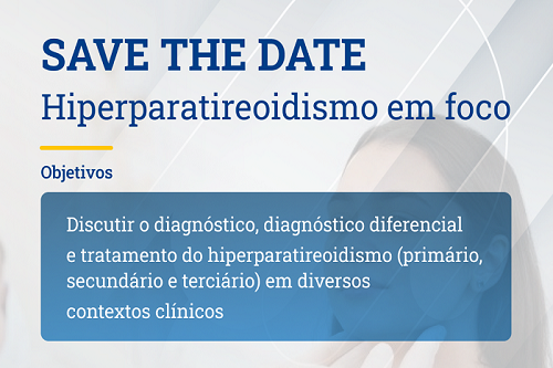 No dia 17/05, a partir das 8h, na Associação Médica do Paraná, será realizada a aula sobre Hiperparatireoidismo em Foco. O objetivo é discutir o diagnóstico, diagnóstico diferencial e tratamento do hiperparatireoidismo (primário, secundário e terciário) em diversos contextos clínicos.