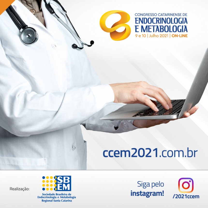 Nos dias 09 e 10 de julho será realizado o Congresso Catarinense de Endocrinologia e Metabologia - CCEM 2021, totalmente online. As inscrições estão abertas e podem ser feitas pelo site https://www.ccem2021.com.br/ .