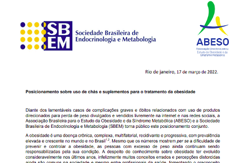 Posicionamento sobre uso de chás e suplementos para o tratamento da obesidade
